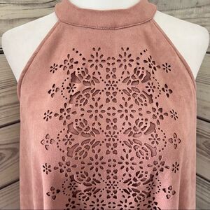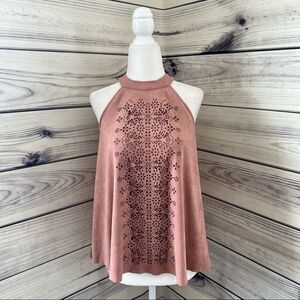 Clover + Scout Peach Pink Cutout Detail High Neck Suede Tank Top