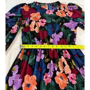 Clover and Sloane Long Sleeve Tiered Midi Black & Floral Dress Women's US 4