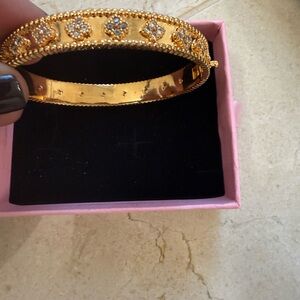 This stunning bracelet features a beautiful combination of gold and silver tones, perfect for adding a touch of elegance to any outfit. worn once and filled 22k. Comes with box and size M