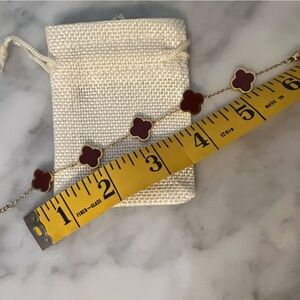 NWOT Brand new fashion bracelet. 🍀Clover🍀 shape charms on chain bracelet 6.5” metal chain. Burgundy red. Costume jewelry. Nice weight.