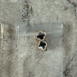Clover stud earrings ; black with gold trim and diamond color border