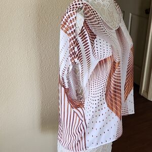Super pretty geometrical pattern with cold shoulders, and a hi-lo hem. B50.622