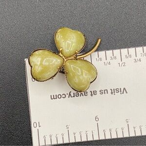 This exquisite gold brooch features a clover design with three smooth, glossy leaves (not sure if real stone) set in a gold frame.