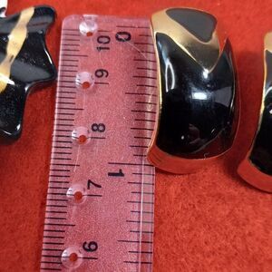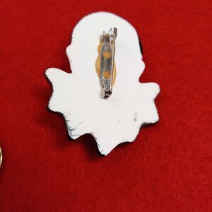 Clown Brooch Clip/Pierced Black and Gold Enamel Earrings