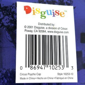 Clown Circus Psycho Adult Vinyl Cap Fright Asylum by Disguise NOS NWT