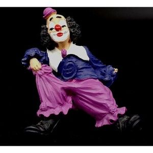 Clown Figurine Dipinto A Mano Made in Italy Seated Hand Painted Purple Vintage