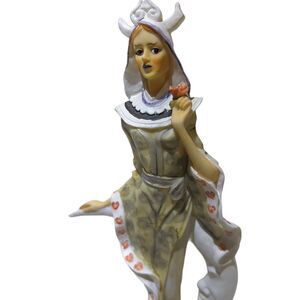 Clown Lady Ceramic Porcelain 8 1/4” Statue Figure & Box Hearts Leaning On Moon