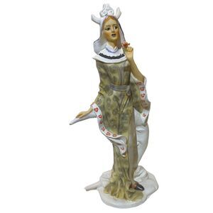 Clown Lady Ceramic Porcelain 8 1/4 Statue Figure & Box Hearts Leaning On Moon.