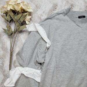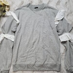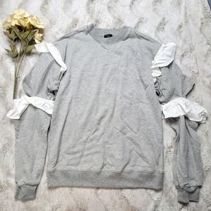 Clu Ruffle Sweatshirt Gray White Cutout Elbows Long Sleeve French Terry Size XS