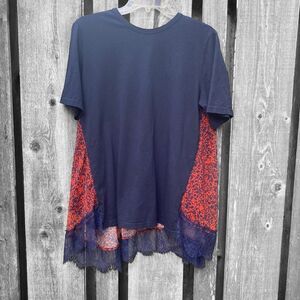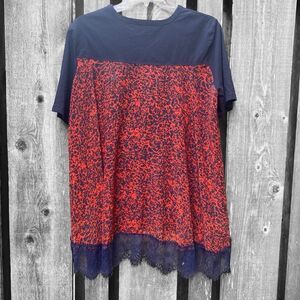 Printed sides finished with lace dress up the classically casual vibe of this Clu tee.