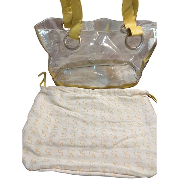 Club A Clear Tote Bag Yellow Faux Leather Dust Bag Footed 15.5" x 10" x 7"