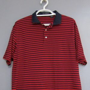 Club Colors Blue & Red Striped Polo Golf Shirt L