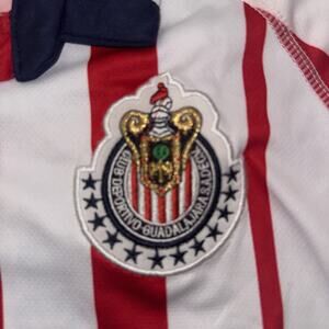 Show your support for Chivas with this authentic Club Deportivo Guadalajara Puma jersey. Features the iconic red and white vertical stripes, embroidered team crest, and Puma logo. Size Men’s Medium. Pre-owned in good condition with light signs of wear, no major flaws.