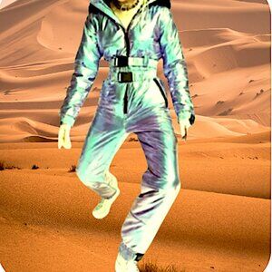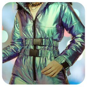 Club Exx Dolls Kill Snow Suit Women Small Ski Aurora Beam Holographic Iridescent