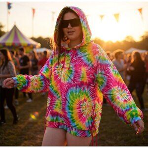 This oversized hoodie by Club Exx wraps you in radial tie-dye chaos, fleece-lined comfort & lace-up side drama.