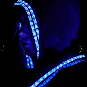 Club Exx/Dolls Kill Light Up Jacket Size M, fits a bit loose. One broken strand from storage, but that strand still lights up, occasionnaly dosnt light up but its double stranded at least so its still VERY vibrant. Super warm! Only wore twice, one of my favorite though. *Sold out online*