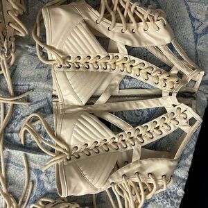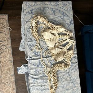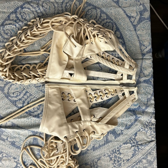 3 piece set. Top is L, and 2x bottoms. One L & one XL. I never wore the bottoms. Didn’t like the fit. Top worn once. There is glitter on it from the one wear.