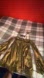•Shimmering gold sequin dress with an off-shoulder design, adjustable straps, and cutout detail