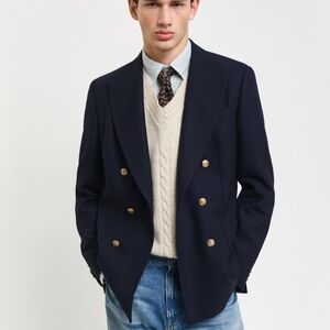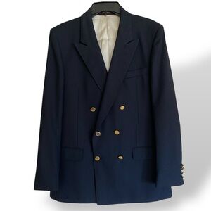 Club International Couture Wool Blazer Double Breasted Navy Blue Size 42 Tall