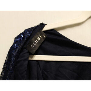 Club L Bodycon Sequin Short Evening Party Dress Women 8 Open Cowl Back Side Zip Lined Blue Long Sleeve