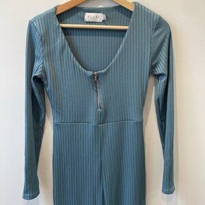 Club L London ASOS Jumpsuit Romper Plunge Zipfront Wide Leg Rib Knit Blue 4