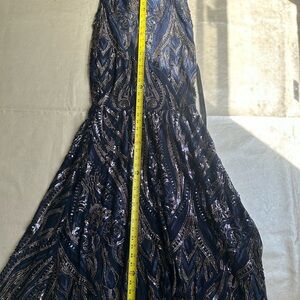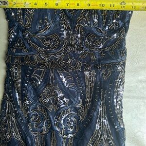 Dazzle at your next prom or cocktail event with this exquisite strapless gown from Club L London. The dress showcases a mesmerizing blue and silver sequin design that glistens with every movement. Its sleeveless, strapless neckline and elegant silhouette make it a standout choice for any special occasion.