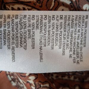 I believe this is a bed jacket the way it is made but may be a blouse. Ties inside and out. Unlined. Pretty colors and patterns.Good overall condition
