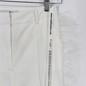 Club L London Count Me In White Tailored Feather Trim Trousers Sz 2 NWT