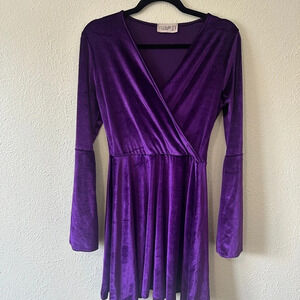 Gorgeous velvet feel dress in purple. Only worn once! In excellent used condition. Perfect for a Halloween party!