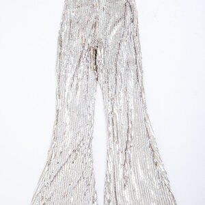Club L London Dropping Hints | Champagne Sequin Wide Leg Trousers Size 4 / Small