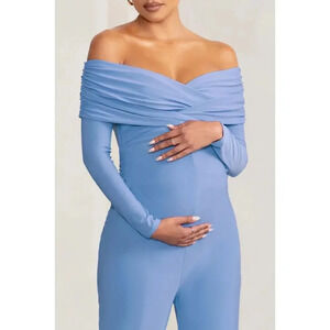 Club L London Nuala Powder Bardot Maternity Jumpsuit