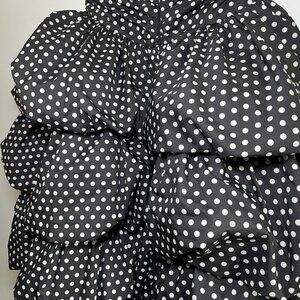 Style: Black Polka Dot Strapless Ruffled Mini Dress