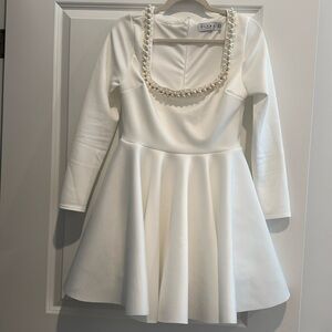 WILDER WHITE SQUARE-NECK LONG-SLEEVE SKATER MINI DRESS