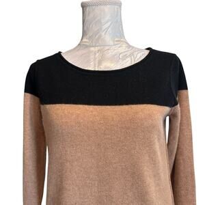 Club Monaco 100% Cashmere Brown Black Sweater Womens Sz Small Colorblock Neutral