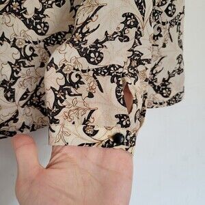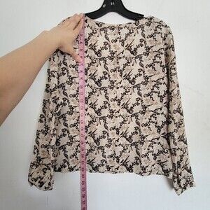 Club Monaco 100% Silk 100% Leather Pocket Long Sleeve Floral Tan Blouse Size XS