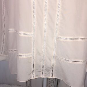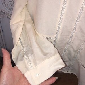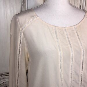 Club Monaco 100% Silk Cut Out Lace Trimmed Long Sleeve Pullover Blouse Size M