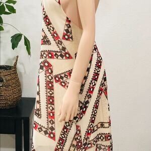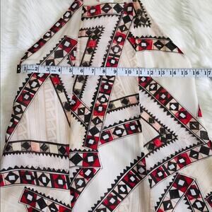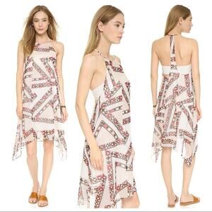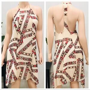 Club Monaco Dreya Dress Asymmetrical Printed 100% Silk Dress Size 0. A colorful print details this airy silk Club Monaco dress. Deep cutouts frame the slender back panel, and the hem falls to soft, asymmetrical points. Button closure at halter strap. Optional bandeau bralette. Lined. Excellent Pre-owned condition. No flaws. Please see the photos for more details and measurements. Smoke and Pet free home. Thank you so much for looking!