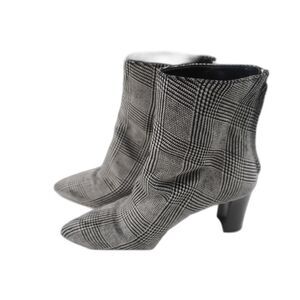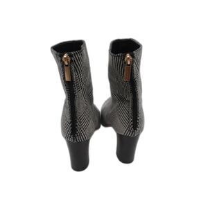 Pre-owned Club Monaco Aaylina Bootie in Black/White. Update to a classic ankle boot. In soft suede with a sleek silhouette and pointed toe. For giving your fall and winter wardrobe a lift. Made in Italy.