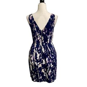 Club Monaco Abstract Print Sleeveless Dress Size 4 | Purple Navy Cream Cocktail