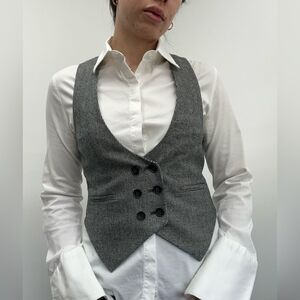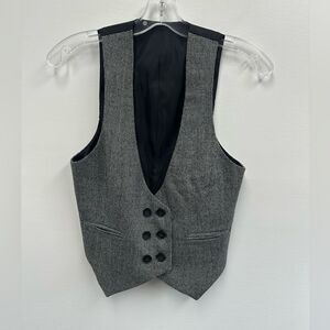 Club Monaco Academia Plaid Tweed Double Breast Wool Vest Black & Gray Size S