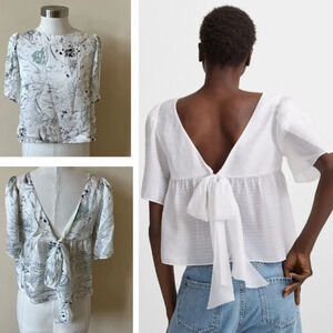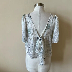 Club Monaco Ahlam Silk Seaside Print Tie Back Top 26060
