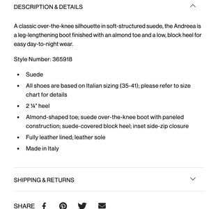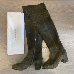 Beautiful suede moss color over the knee boots. Stunning with skirt or shorts. Worn 3-4 times. Kept in original linen bag.