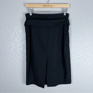 This Club Monaco Arianna Skirt in size 8 is a sophisticated black wool blend piece that’s perfect for work or evening occasions. Designed with a flattering belted waist tie, a classic pencil silhouette, and a modest back slit, this lined skirt offers both comfort and elegance. The hidden back zipper ensures a sleek finish, while the 95% wool and 5% spandex blend provides warmth with a touch of stretch for ease of movement. Removable belt.