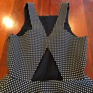 Embroidered dots bring sweet personality to this Club Monaco dress, crafted in a ladylike, fit-and-flare silhouette. The square neckline dips to a V in back. Pockets hide at the sides and a cutout in the back shows a peek of skin. Hidden side zip