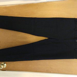 Adorable black ankle length dress pants, perfect for work! Faux leather accent on back pockets.