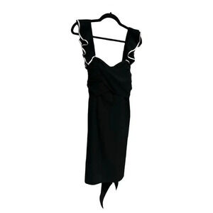Club Monaco Black Bodycon Ruffle Sleeveless Cocktail Dress Tie Back Size 0