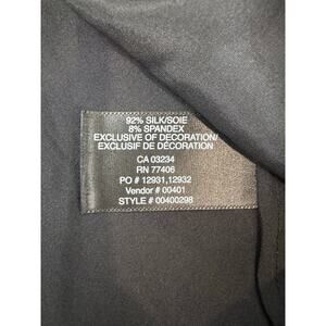 Elevate your wardrobe with this stunning Club Monaco sleeveless top in a luxurious black silk blend. Featuring a beautiful square neckline with jewel embellishments and a keyhole front tie detail, this top combines elegance and sophistication. Crafted from 92% silk and 8% spandex, it offers a flattering, fluid drape with a hint of stretch. Perfect for date nights, formal occasions, or holiday events.