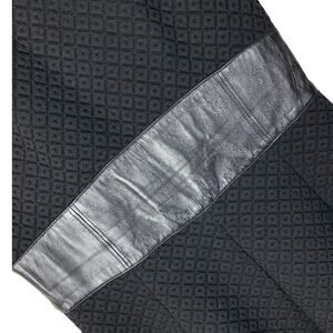 Club Monaco Black Fit & Flare Dress Leather Waistband Quilted Diamond Trellis 0 XS Extra Small