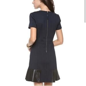 Club Monaco Black Navy Dress 12 Mini Chic Leather Trim Cocktail