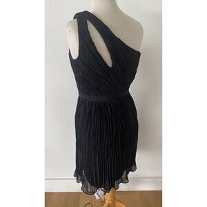 Club Monaco Size 2 Pleated Ruched Black One Shoulder Dress.